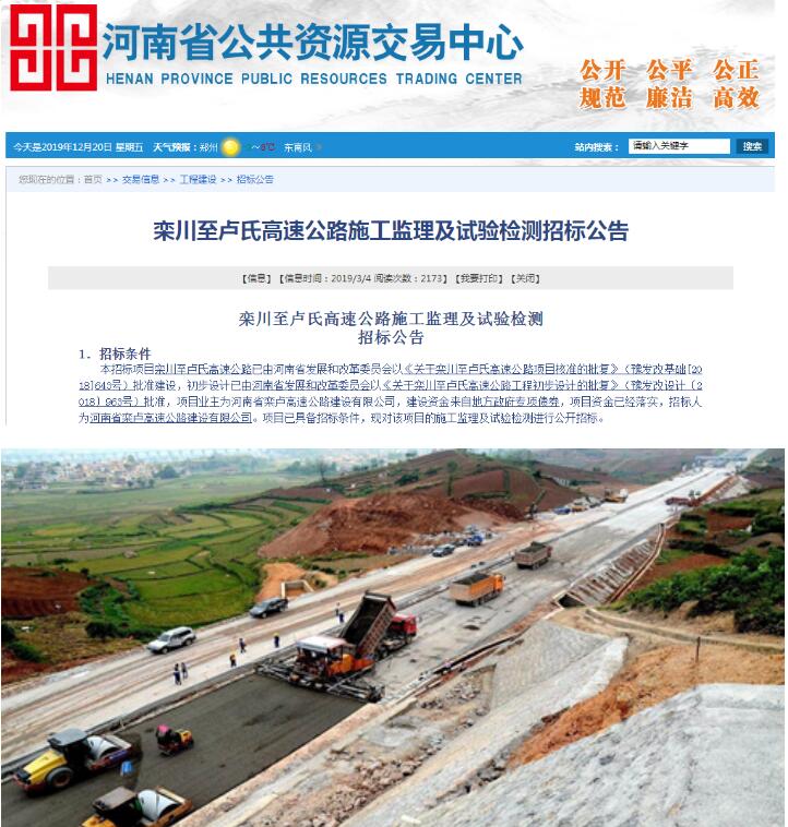 欒川至盧氏高速公路施工監理及試驗檢測